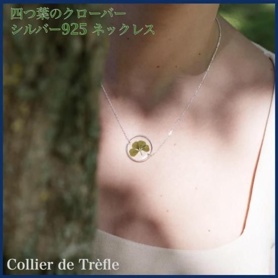真の四つ葉のクローバーを封じ込めたシルバー925のネックレス。ミニアジャスター付き(サイズ調整可能)です。
