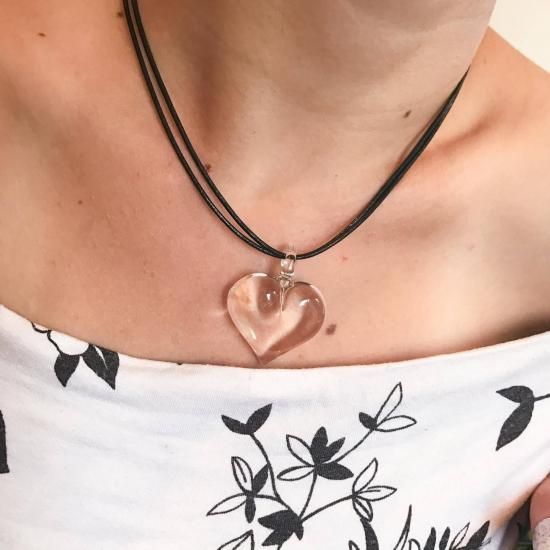 一点一点ハンドメイドのハートのガラスのネックレスはガラス工芸部門に置いてフランス国家最優秀職人賞(M.O.F.)を受賞した一番人気のアートネックレス❤︎ブラックレザーと合わせてシャープ&フェミニンに着こなしてみてはいかがでしょう?