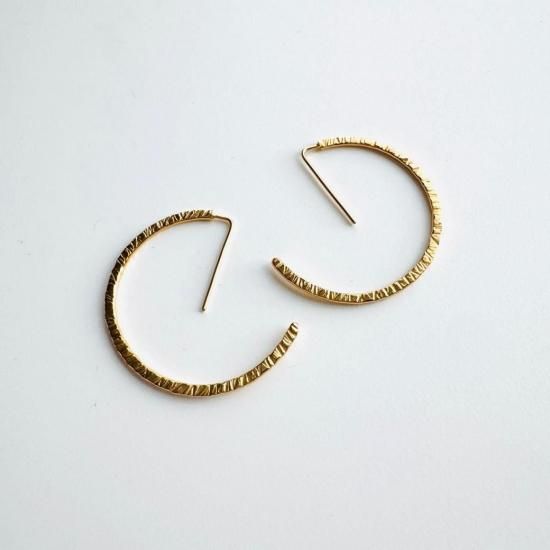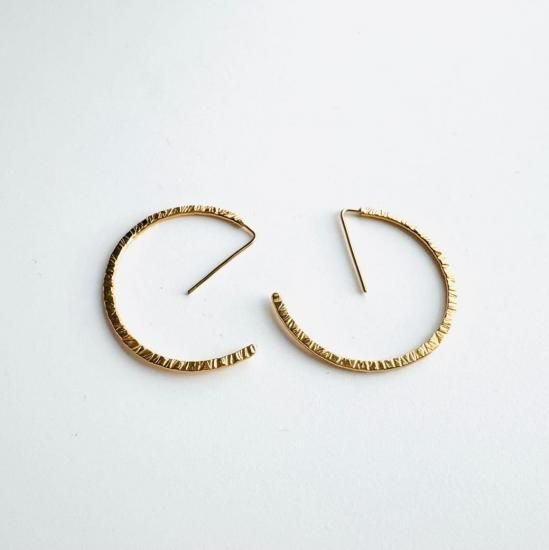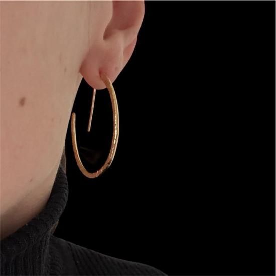 フープピアスを再解釈...留め金いらずでスッキリと格好良くお使いいただける、手作業で作り上げた槌目モチーフの大人気フープピアス!